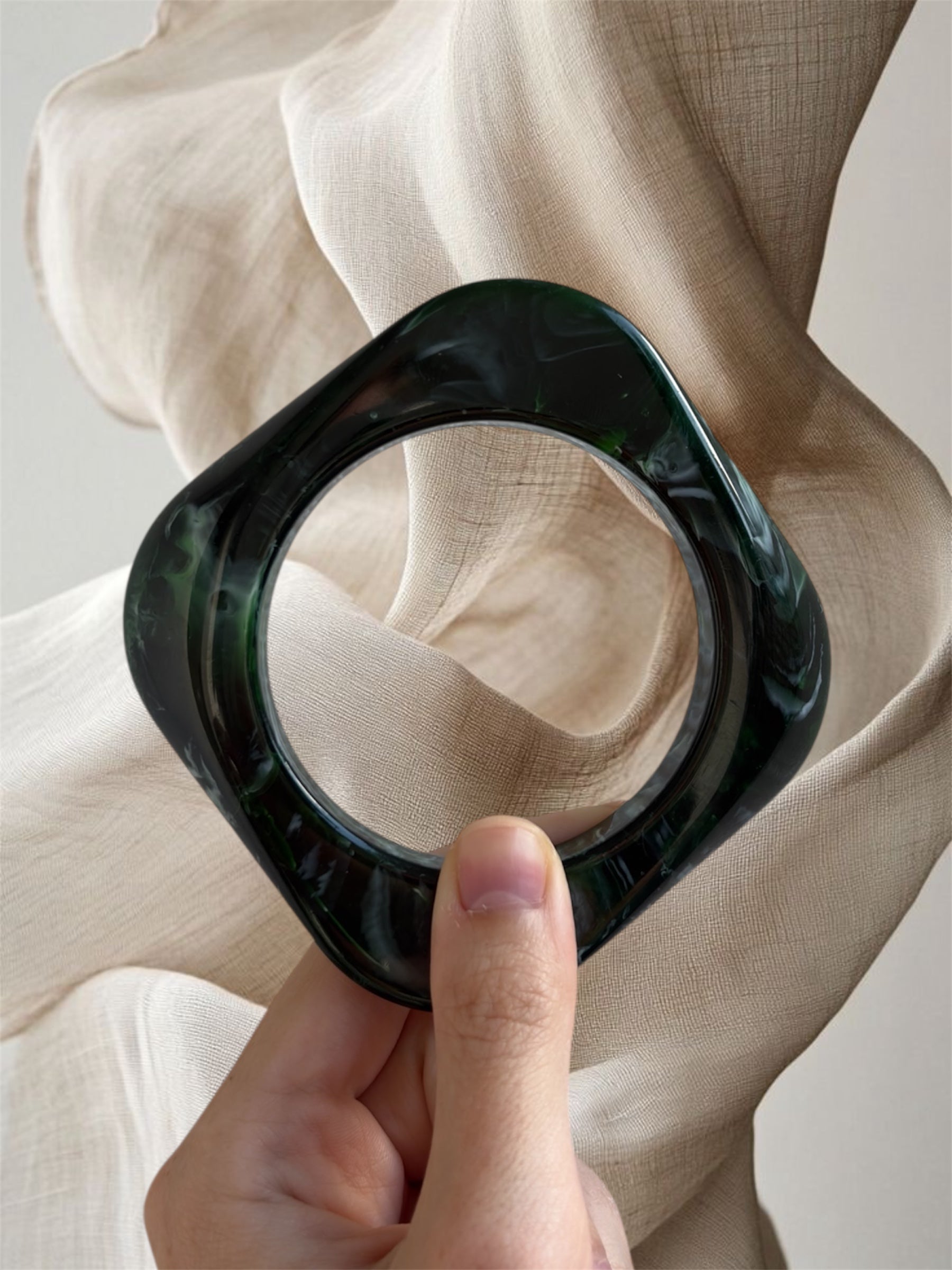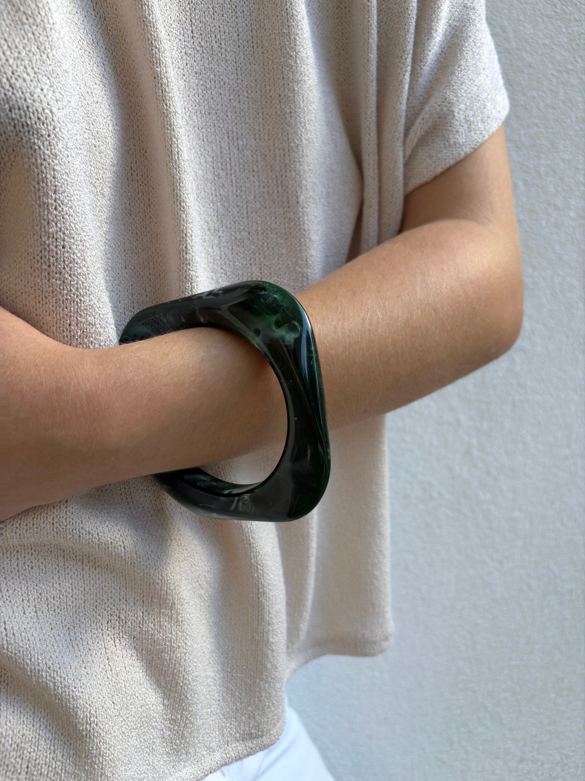 Minimal αλλά bold, το βραχιόλι Jade είναι ακρυλικό σε έντονο βαθύ πράσινο χρώμα με τετράγωνο design. Ένα statement κομμάτι που δίνει urban χαρακτήρα σε κάθε look, από το καθημερινό μέχρι το πιο edgy!