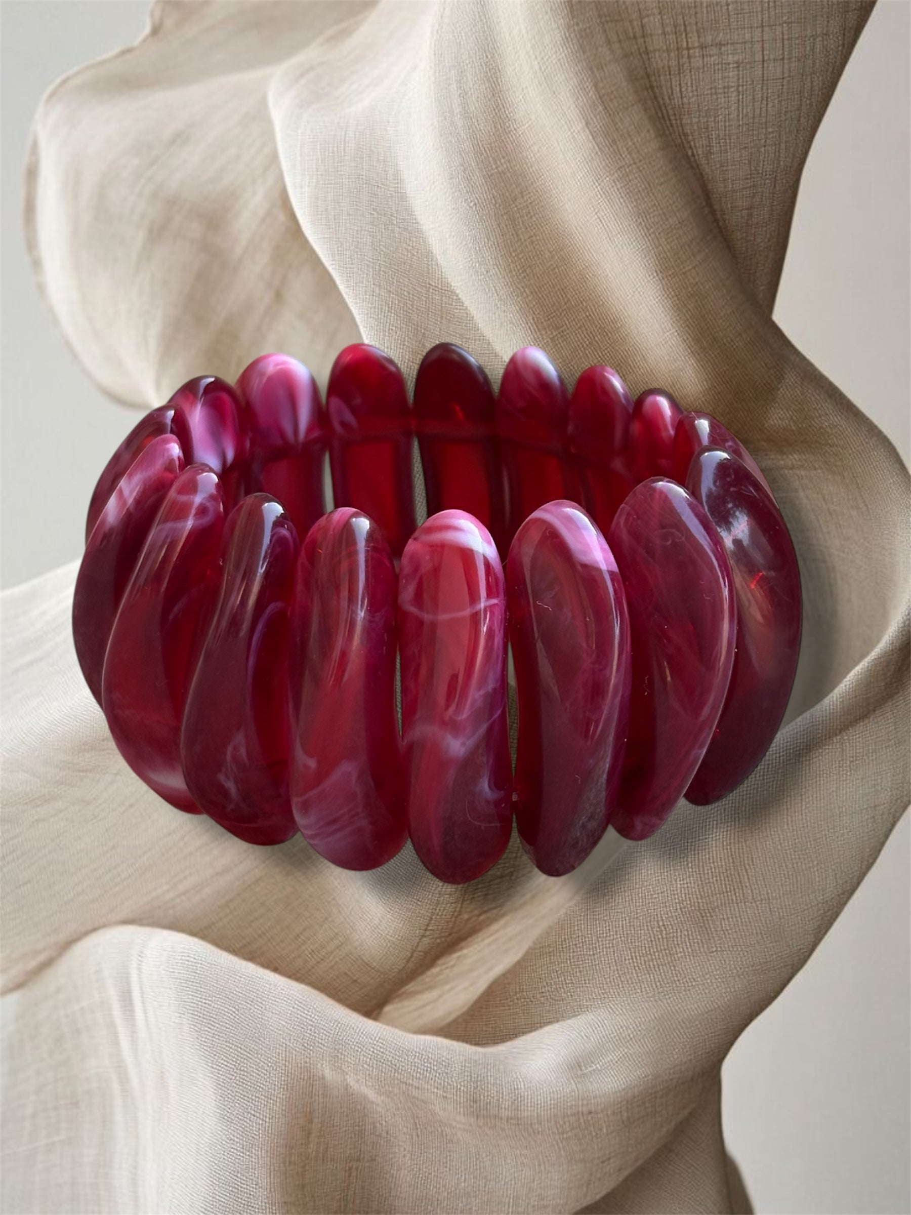 Βραχιόλι από ρητίνη σε βαθύ μπορντό χρώμα, περασμένο σε ανθεκτικό λάστιχο για άνετη εφαρμογή. Κομψό και διαχρονικό, δίνει ζεστή, φθινοπωρινή πινελιά σε κάθε στυλ!